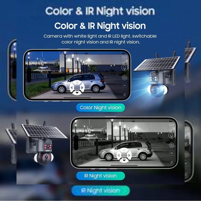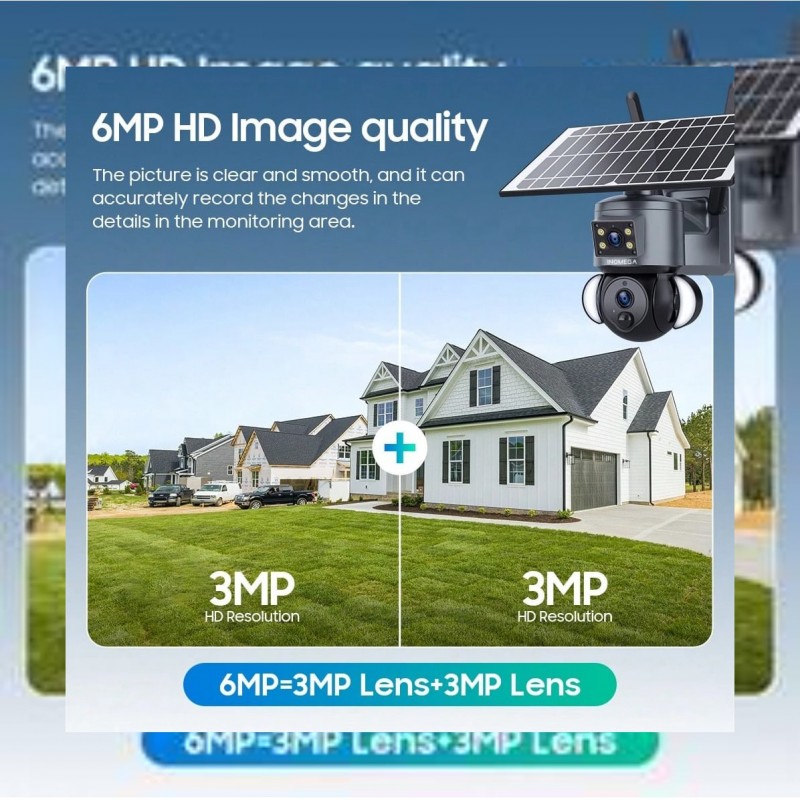 1 pieza INQMEGA Cámara de solar de 6MP 4G LTE con doble lente, detección de movimiento PIR y notific