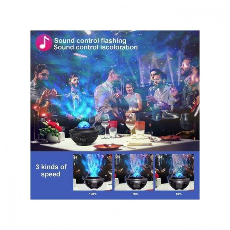 • Remote Controller and USB Charging: Star night light with smart remote can freely control ocean wave and star light on/off, adjust brightness, change lighting mode, speed, music mode, volume.