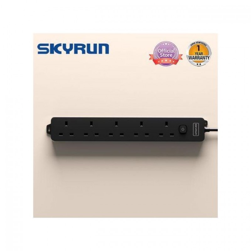Skyrun 5 Sockets 2 Metre Cord Power Strip Extension Box-Black
