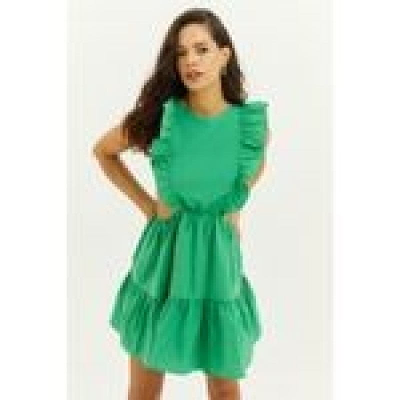 Trendyol Women's Green Waistless Plunging Ruffle Mini Dress