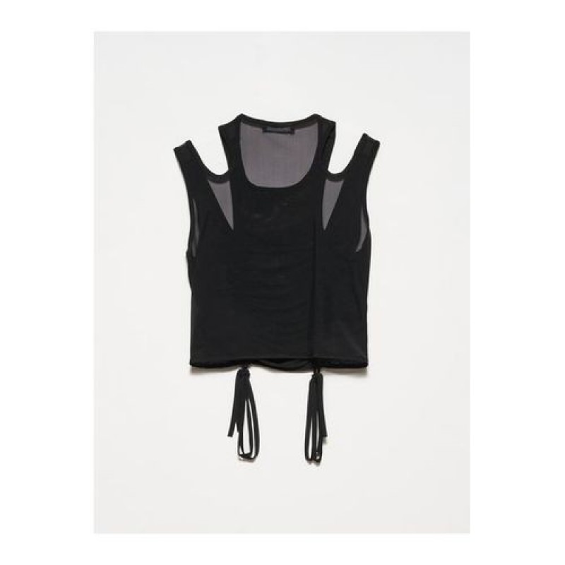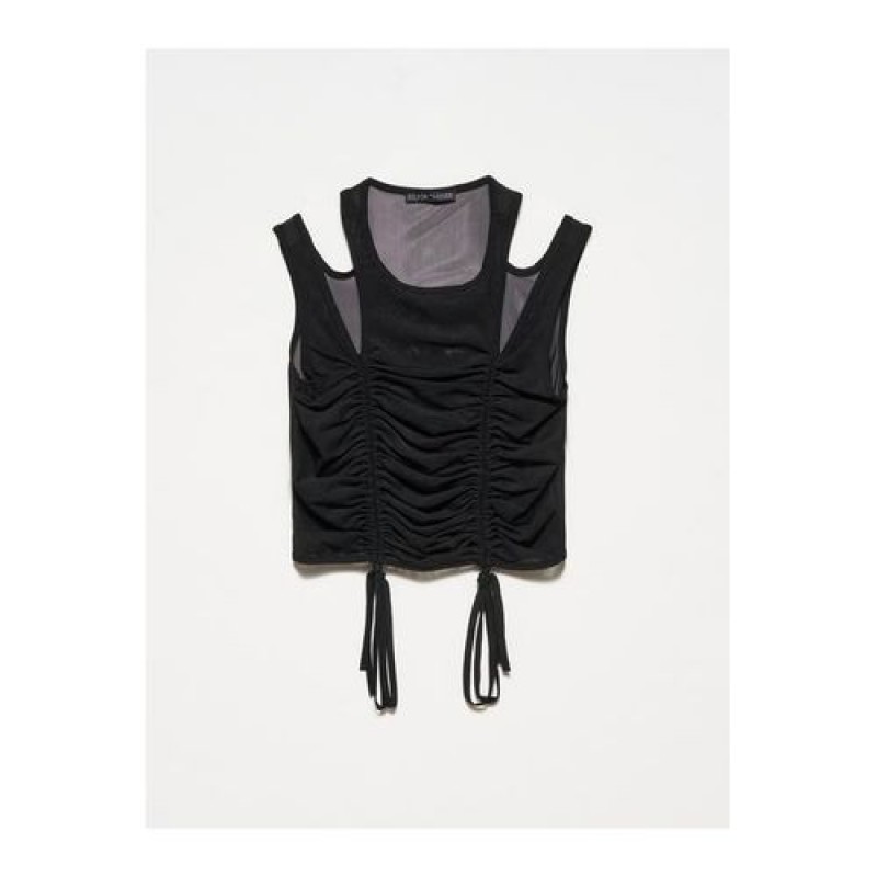 Trendyol Gathered Tulle Top-black