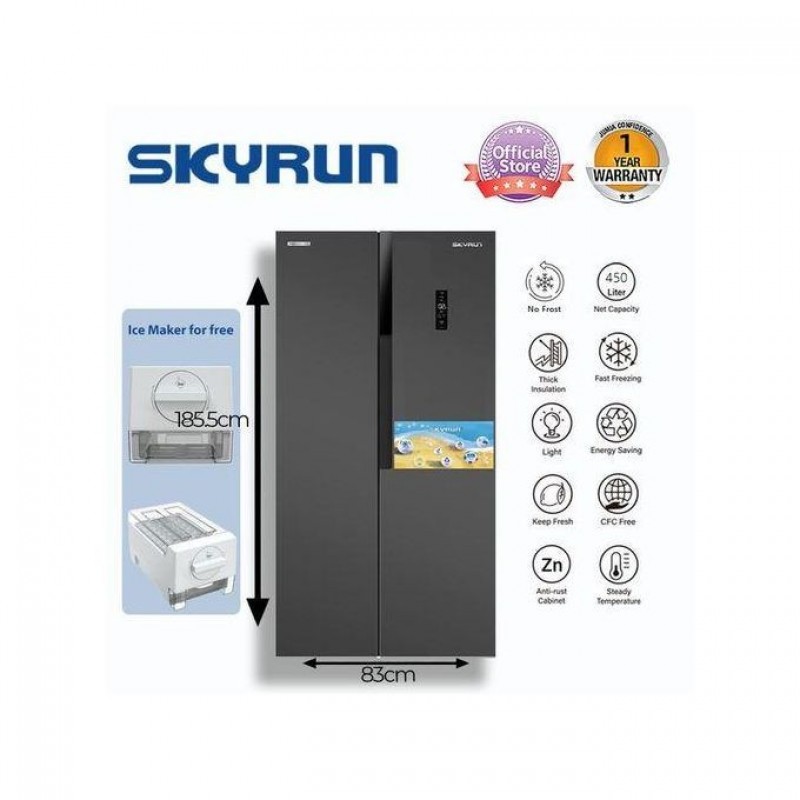 Skyrun 450 Litres Side By Side No Frost Fridge (BCD-450W) - Gray