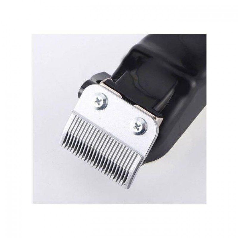 • This electric hair clipper has a long-lasting battery life and uses stainless steel metal blades.