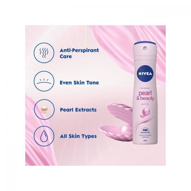 NIVEA Pearl & Beauty Anti-Perspirant Body Spray For Women, 48h - 200ml (Pack Of 2)