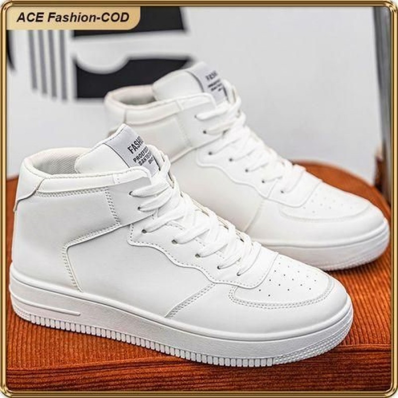 ASHION Men's High-Top Sneakers Comfortable And Stylish Non-Slip Athletic Shoes - White