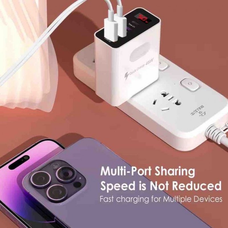 Head 45W Charger Head 4Port Typec + USB Digital Display