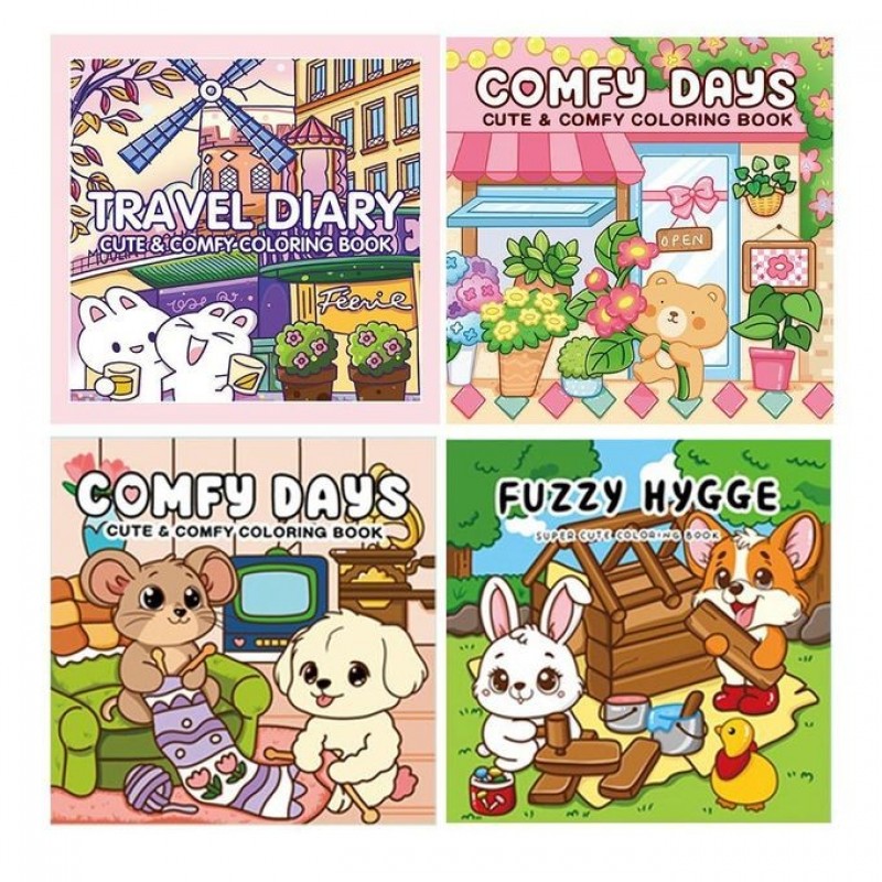 【Pack of 4】 One package includes 4 Enlarged size coloring books, each with 46 pages of double-sided printing. Each book has a unique theme including life, travel, flower store and friends.