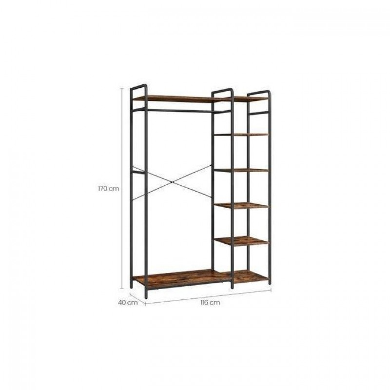 LASA Industrial Open Wardrobe with Shelves - Metal Clothing Rack & Storage
