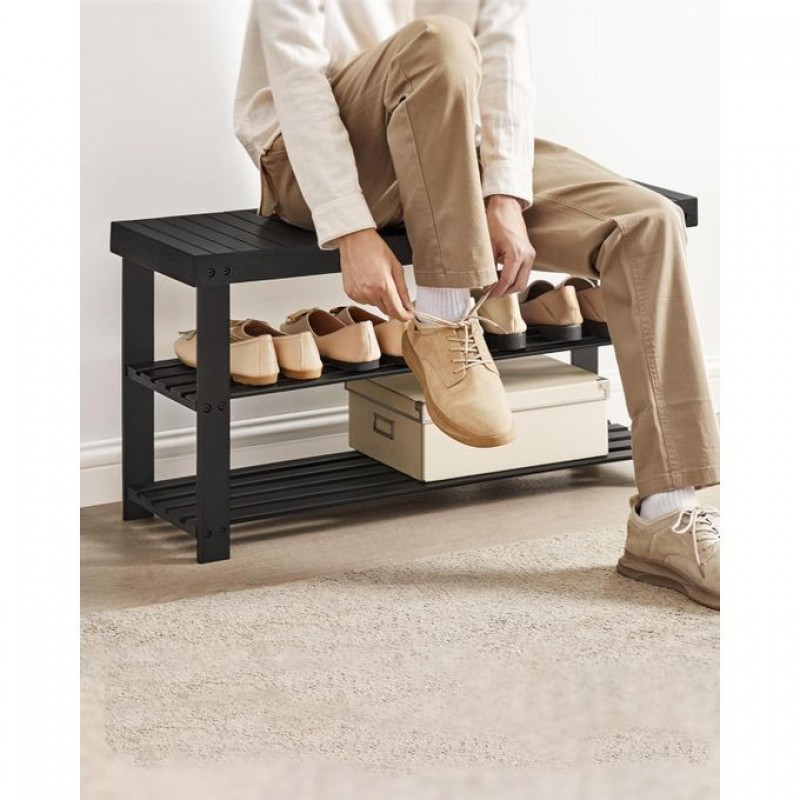 Declutter Your Space: Featuring 2 bamboo shelves, this bench can neatly store at least eight pairs of shoes. The top shelf provides a handy surface for your work bag, wallet, or other essentials.