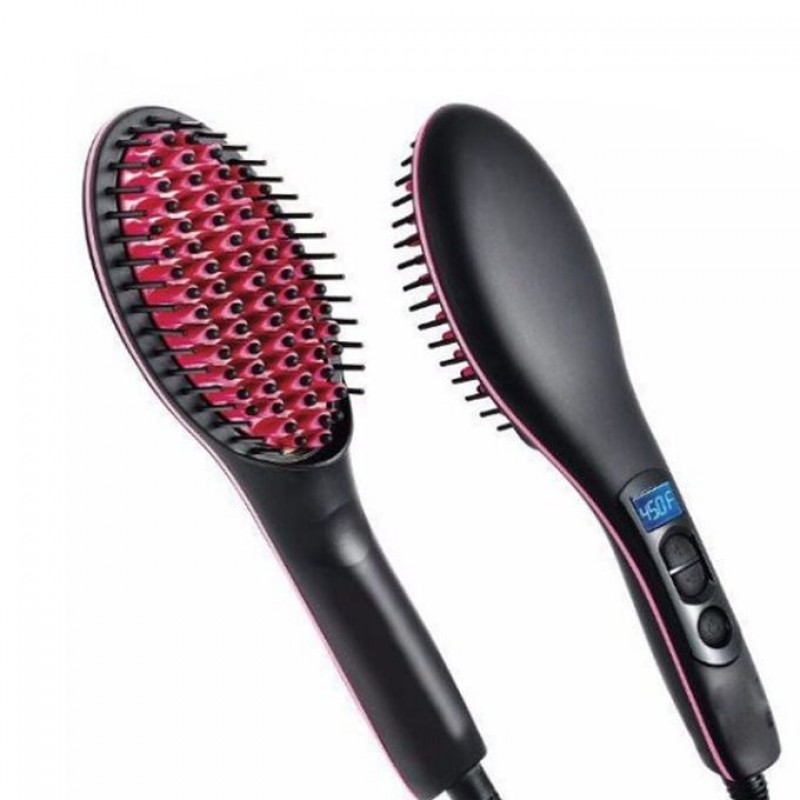 This product is a newly developed product in our shop, the most trusted supplier and the most affordable price, to provide you with the most satisfying shopping experience     Simply Straight Ceramic Electric Degital Control Antiscaled Brush Fast Hair Straightener Brush CombWith Lcd Display Specification: Power: 40w Plate: Ceramic Color: Black Heater: MCH Temperature: LCD Display Max temperature: 230C/450F Voltage: 100v-240v Product size: 27.5cm*7cm*4cm Net Weight: 430g   Feature:  1. Heats up fast  2. 60minute Auto shut- off  3. LCD Screen Display Temperature  4. 3D Ceramic Bristles Gently Straightens Hair  5. Temperature Control Adjustable up to 450 F  6. Ft. Swivel Cord Usage: 1. Separate a section of hair to be straightened.                                          2. Place Simply Straight brush close to the roots of selected hair.                                            3. Hold the hair firmly and brush down from root to tip.                                            4. Repeat steps 1-3 times. (After use, press the On/ Off to turn off the brush, then unplug it. Wait until the brush is completely cooled down before handling or storing) Package Including: 1 x Simply Straightener Brush 1 x Power Adapter 1 x   Instruction Product Description     1、100% Ceramic tourmaline heat plate, heat more evenly     2.When the product reaches the maximum temperature,The red tips surface is only 50 degrees Celsius, no worry. to be scald.     3.The Anion injection holes on the surface of brush will realease much ozone to protect you hair from damage when it is working.     4.Digital LCD display shows the operating situation on the clear and active screen.     5.Enhancing the most advanced ceramic heater(MCH), quick heat up and constant heat .     6.Dual voltage for worldwide use.